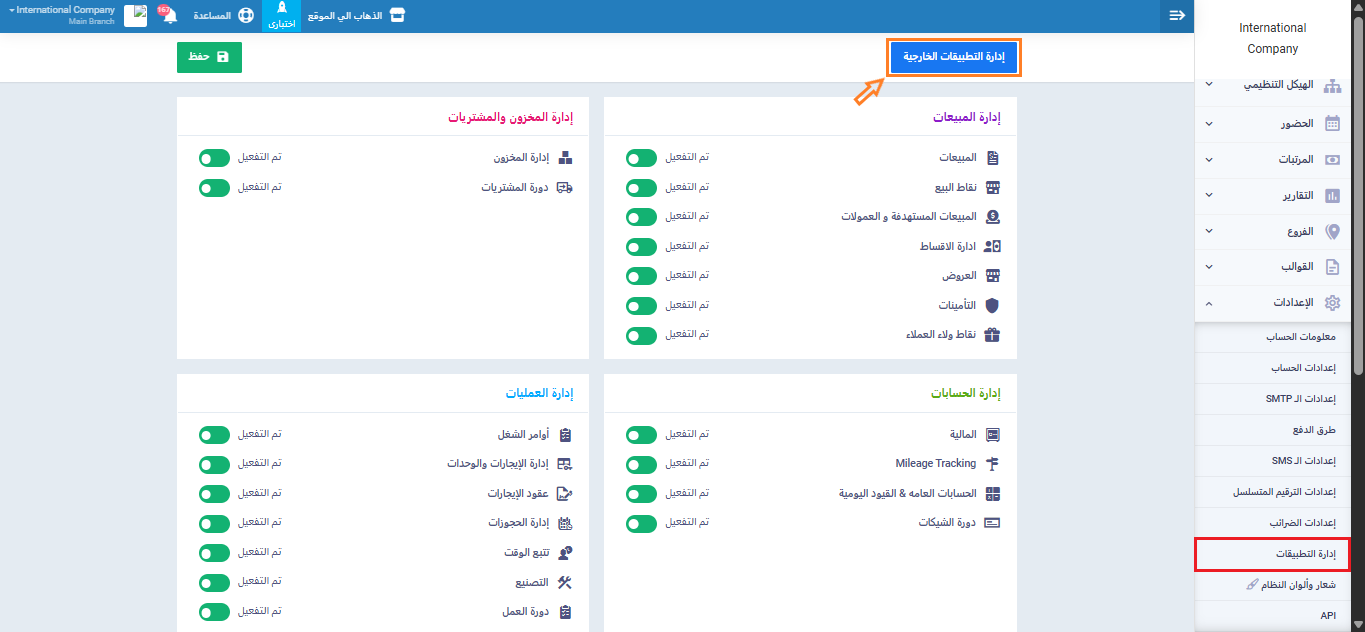 لإظهار الإعدادات الخاصة بهامش الربح، يجب أولًا تفعيل تطبيق “حساب هامش ربح الفواتير وعروض الأسعار“، وذلك من خلال اتباع الخطوات التالية:
