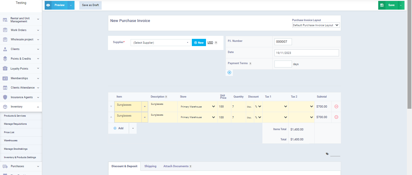 4- You will be redirected to the invoice creation page with the products listed in the warehouse requisition.