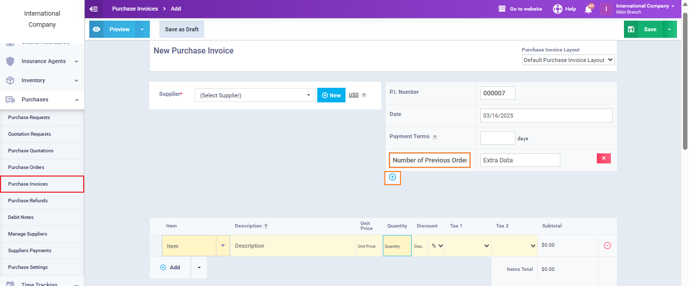 For example, you can add a field like ‘Number of Previous Orders from this Supplier,‘ where the value is a number representing the count of previous supplies from the supplier.