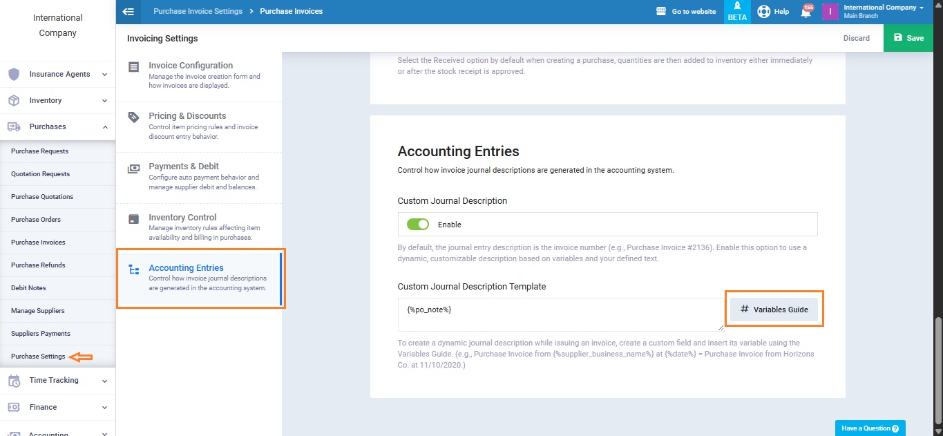 The Full Variables Guide allows you to add flexibility to all your documents in the ledger, such as invoices and email messages.