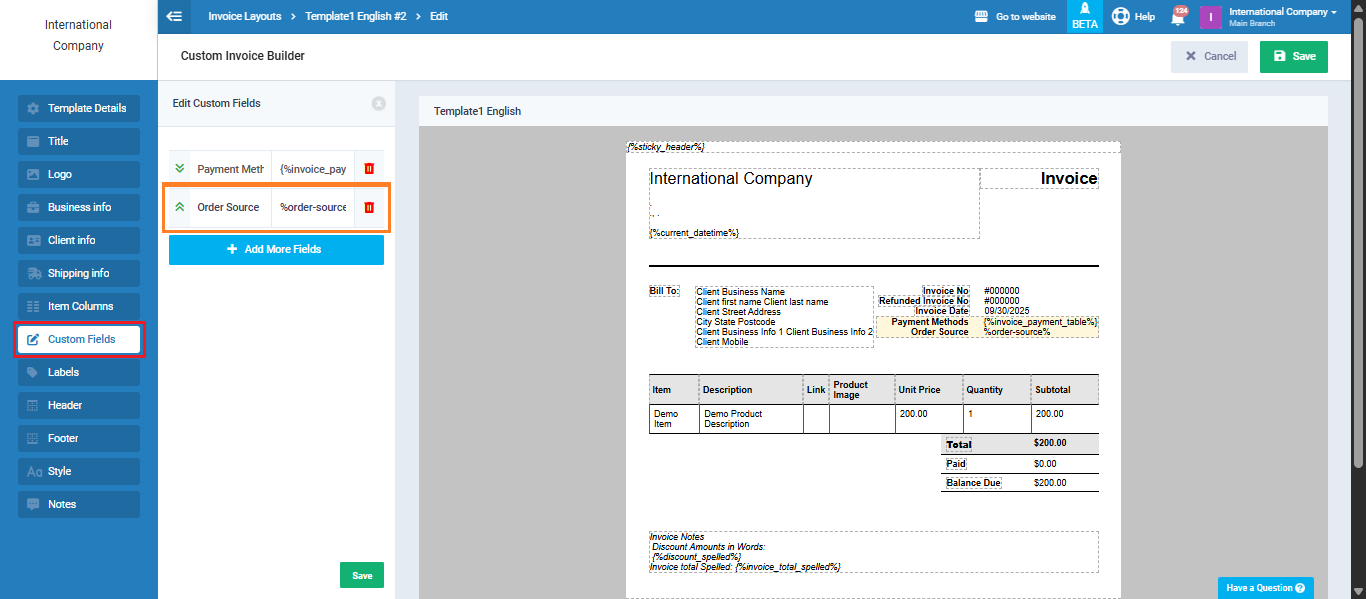 In the steps below, we will go through how to set up order sources, link them to invoices, and display them in printable templates.