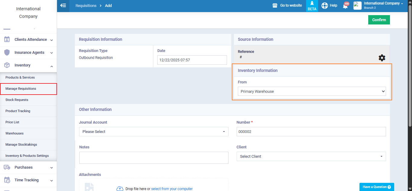 After adding the active sub-warehouse, you can select it in the system screens related to the warehouse if you want, such as the requisition screen or the invoice screen.