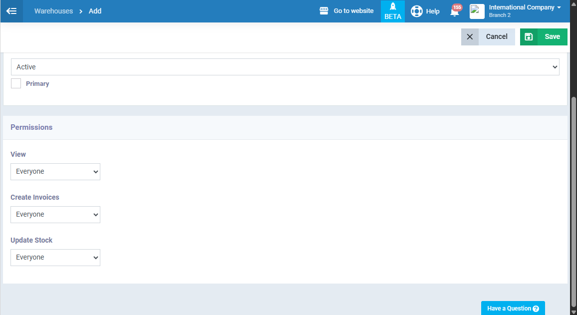– Specific Branch: This means assigning the warehouse’s permission to the users of one of your branches.