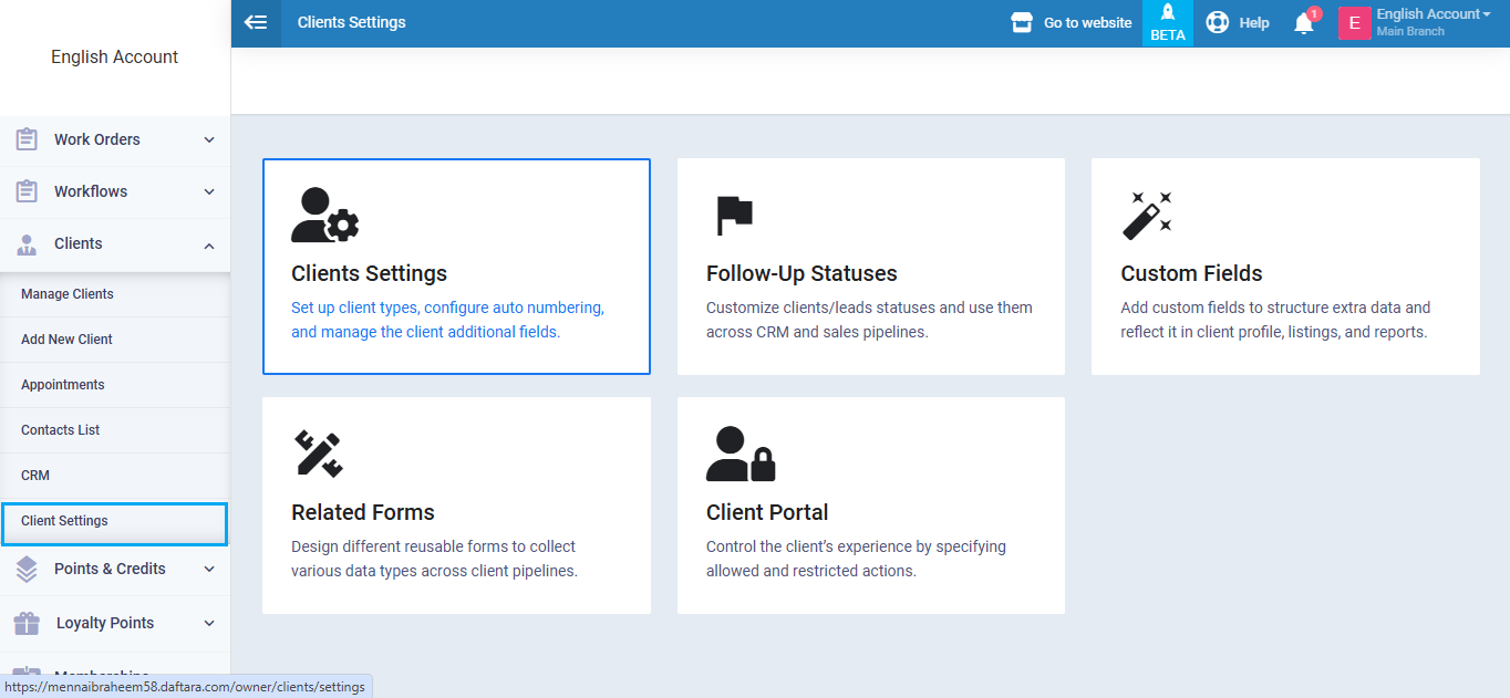 Click on “Client Settings” from the drop-down under “Clients” in the main menu, then click on the “General” tab.