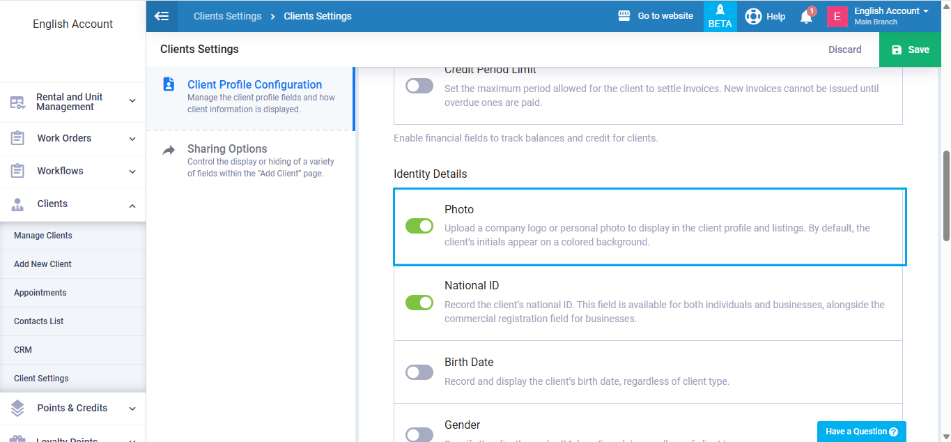 In the system, you can add either an individual or a business client. Consequently, you might need to distinguish clients through personal photos or companies through company logos, and in both cases, the steps are the same whether it is a personal photo or a logo.