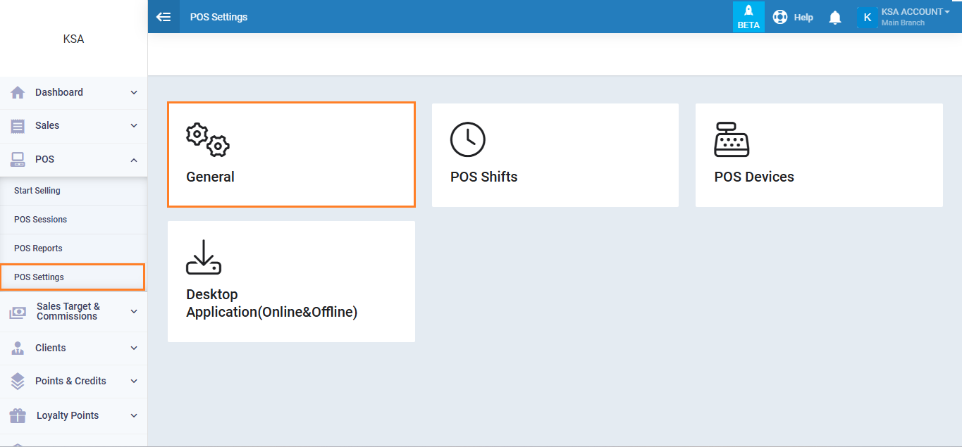 Click on “POS” from the main menu then, from the dropdown click “POS Settings“, click on the tab “General“.