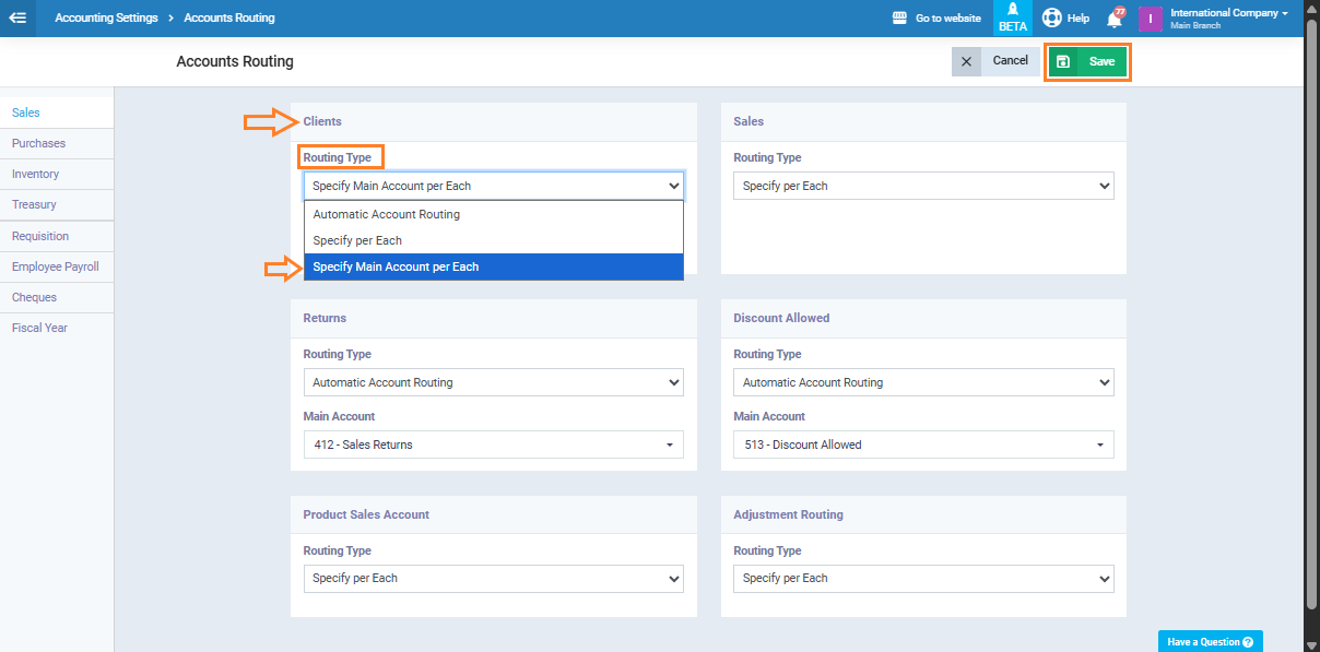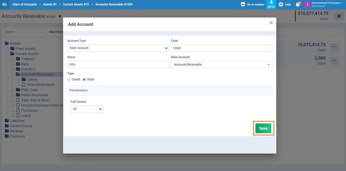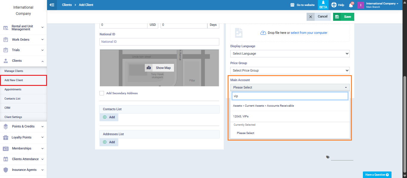 Now, when adding a new client, the user will be able to directly link them to the main account previously created in the chart of accounts.