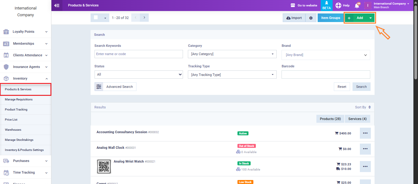 Click on “Product & Services” from the dropdown menu of “Inventory“. Click on the button “Add” to add a new product.