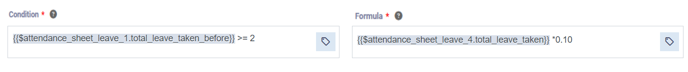 The system calculates the total leaves taken before the current attendance sheet period for the specified leave type. If the condition is met, the formula is applied.