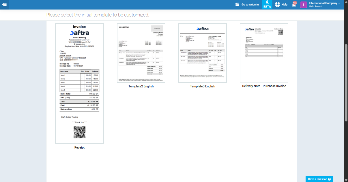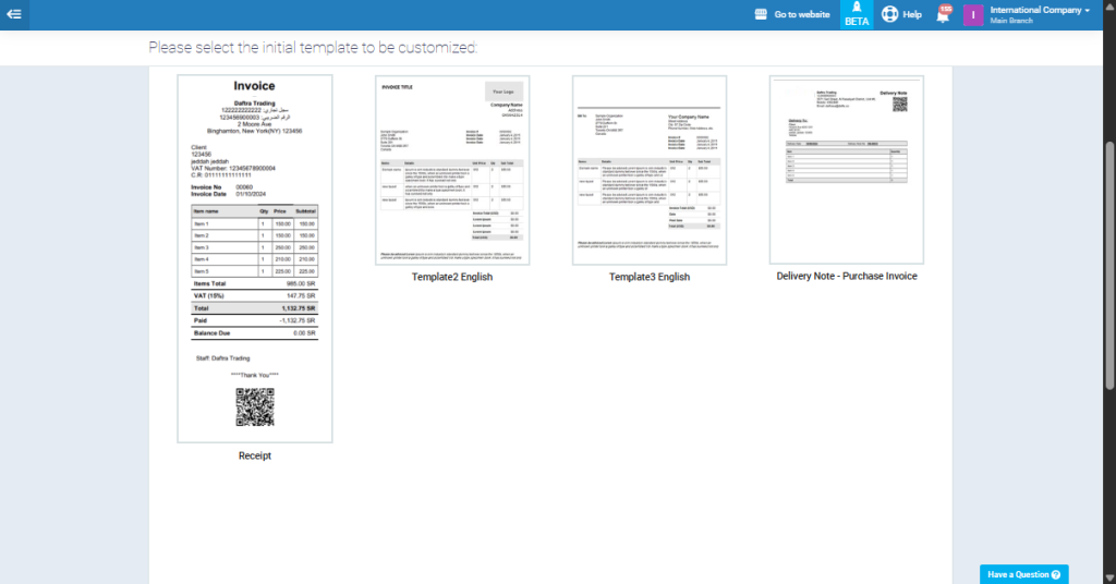 In addition to the default invoice template, the system provides several other layouts that you can use, as they are modified by adding or removing some fields or changing the design. In this article, we will explore how to control some properties related to the arrangement of displaying quantities and amounts of products in sales and purchase invoices.