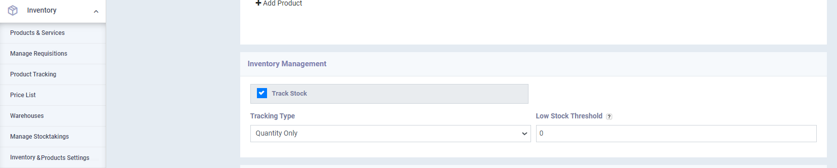 Also, specify the type of tracking in case the “Track Stock” feature is activated.
