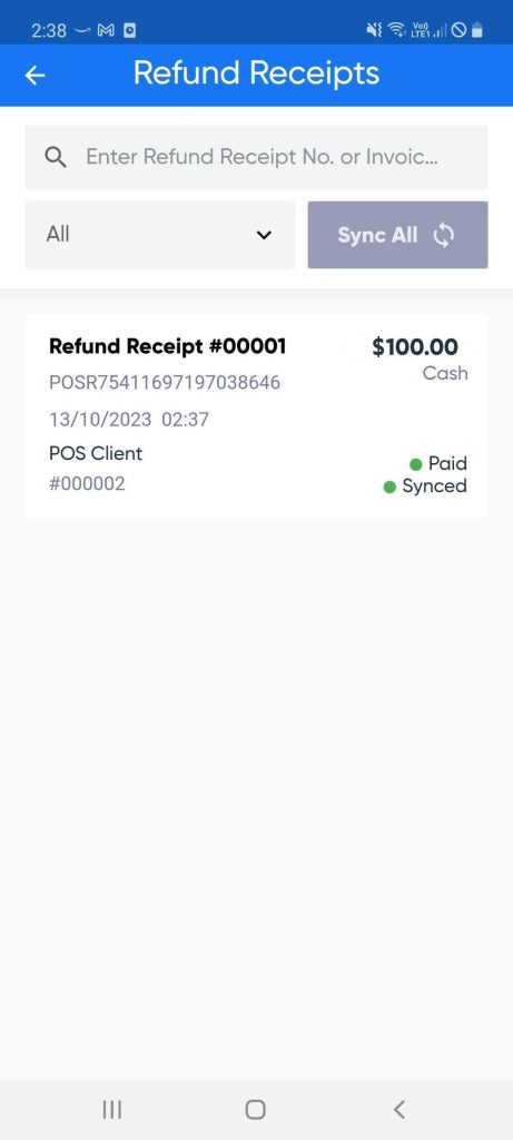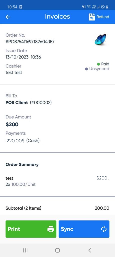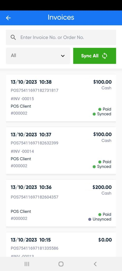 In case the mobile is connected to the internet while using the POS app, the invoices are synchronized instantly and appear on your Daftra account immediately upon issuance from the mobile app. However, if the mobile app is used without internet access, you can synchronize when connected through the following steps: