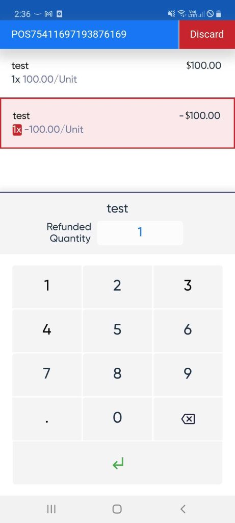- Click on the arrow button, select the quantity to be returned from each item, then click on the arrow button again.