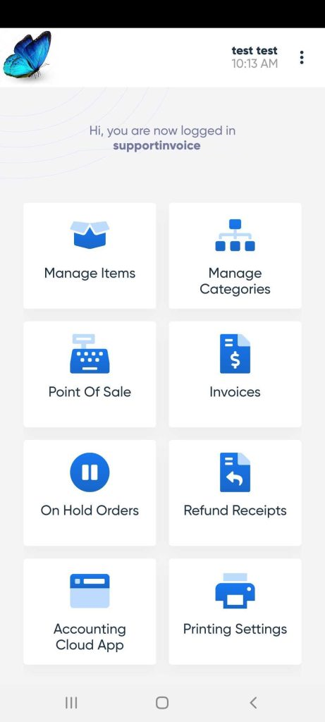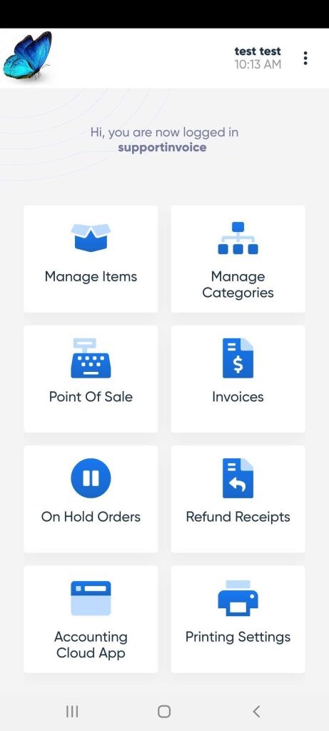 You or one of the users on your Daftra account can log into the app via email and password, or, by scanning the QR code from the QR code image available in the “POS App” under “Daftra Mobile Apps” below the main menu on your account under your name.