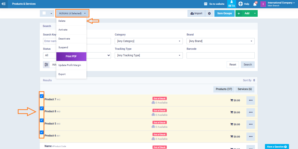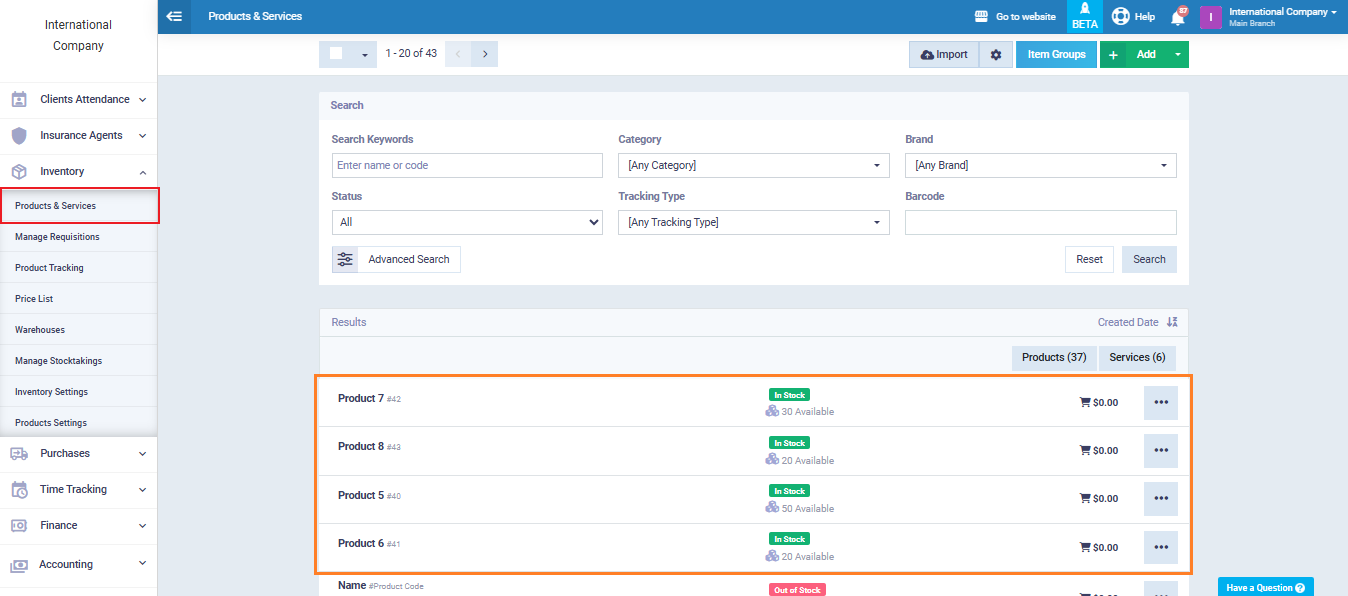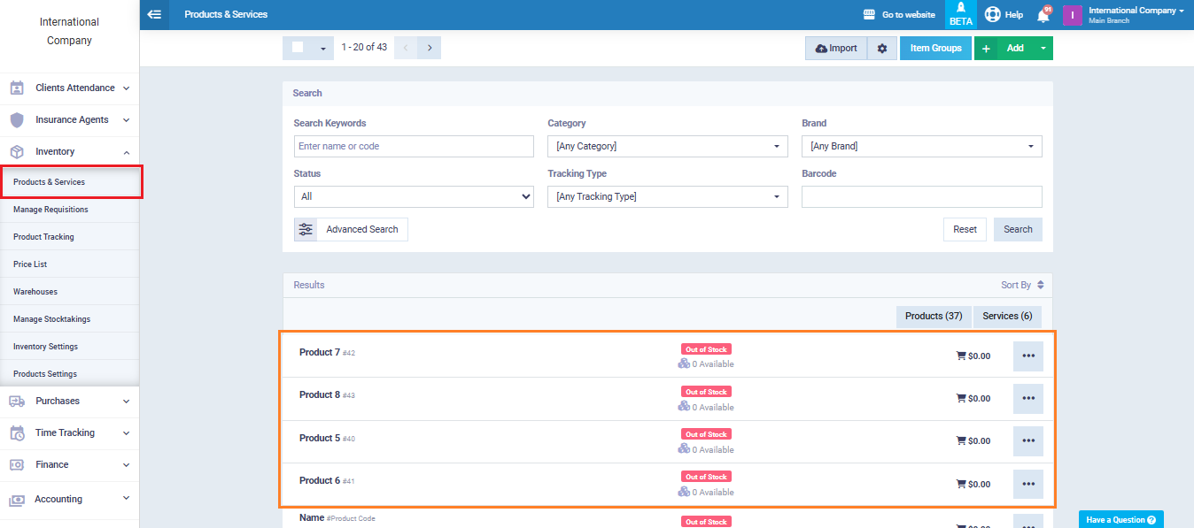 After returning once again to the “Products & Services” page, you will notice that the product quantities have been completely removed following the deletion of the related requisition.