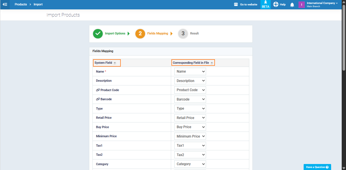 Match the fields between the data in the uploaded file and the corresponding fields inside the system to ensure the information is imported correctly and in an organized way.