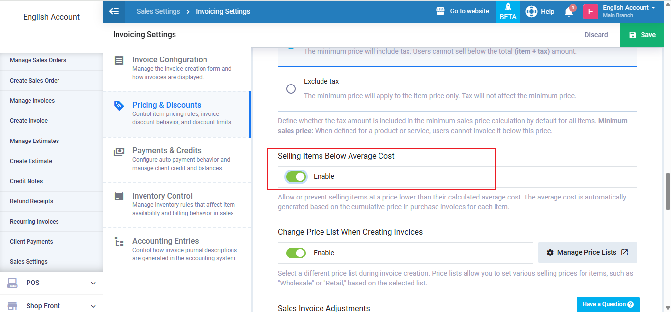 Daftra allows you to prevent the sale of a product at a price lower than its average cost, which is calculated based on the product’s purchase prices over time. We will discuss how to do so through this article.