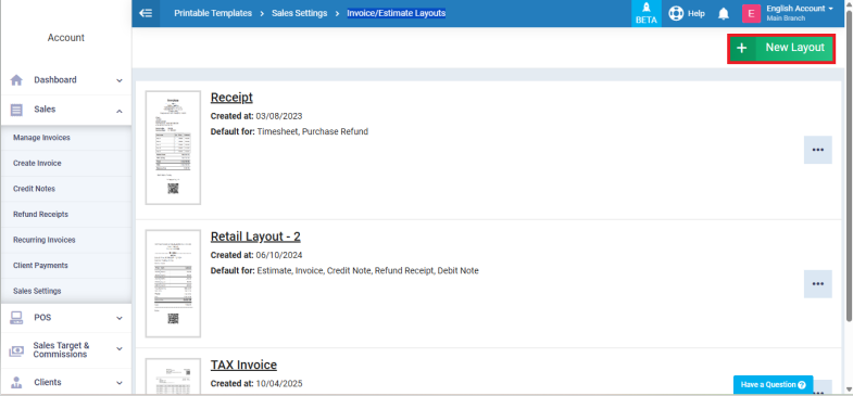 In addition to the default invoice layout, the system provides several other layouts that you can use as they are or customize by adding or removing fields or changing the design. In this article, we will review how to control the display of the invoice creation time and print time in the print layout.