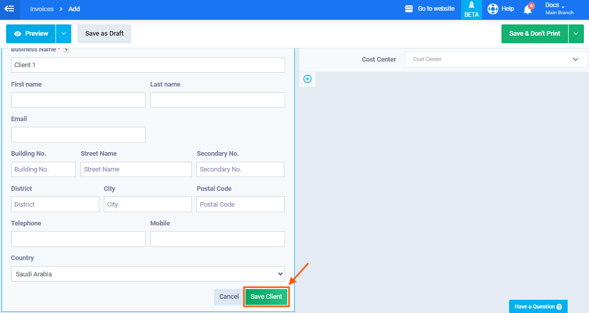 - After editing the information, click on “Save Client” located at the bottom of the client’s details.