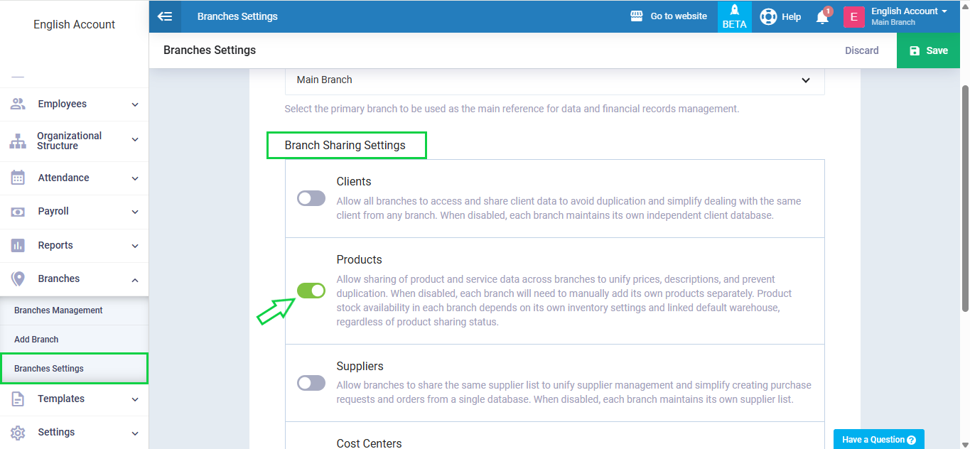 Enable Sharing Products Between Branches