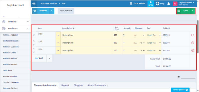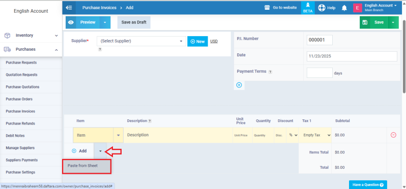 The system provides a quick and efficient way to import purchase invoice items directly from an Excel file instead of entering them manually. This helps you manage large numbers of items smoothly while reducing the chance of errors. The steps below explain how to prepare your Excel file and import it into a purchase invoice.