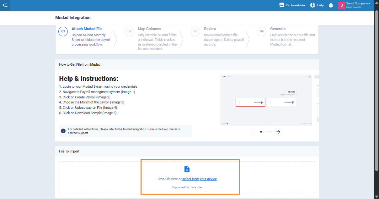 Before generating the payroll file, you must first activate the Mudad app in your account by following these steps: