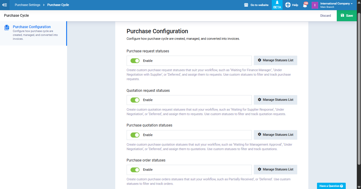You won’t be able to assign manual cases to purchase cycle documents without activating this feature from the settings.