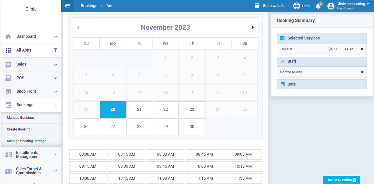 Choose a suitable date and time of the appointment according to the availability of the selected staff member’s schedule.