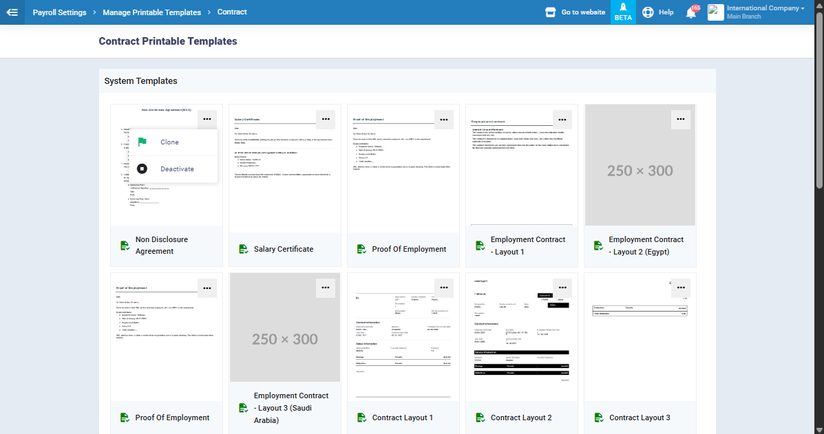 The system offers various pre-designed formats or layouts that allow users to generate hard copies of important documents directly from the system. This article clarifies how to edit the printable templates of (Contracts – Payrun – Payslips) to suit your business needs.