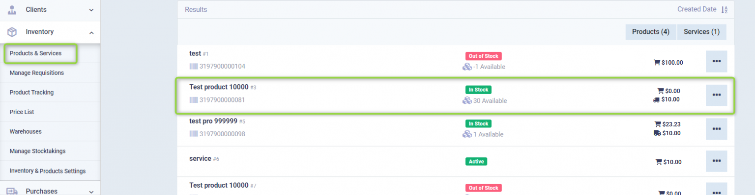 Click on “Products & Services” dropdown under “Inventory” in the main menu. Then click on the product you want to print its barcode label for.