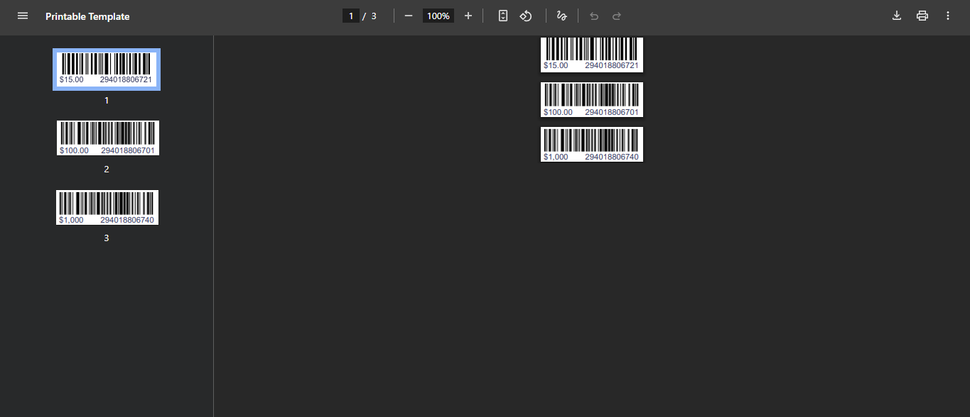 You’ll be redirected to a file containing barcode labels for all the selected products. You can press the print button to print directly or download it to your device in PDF format and then print.