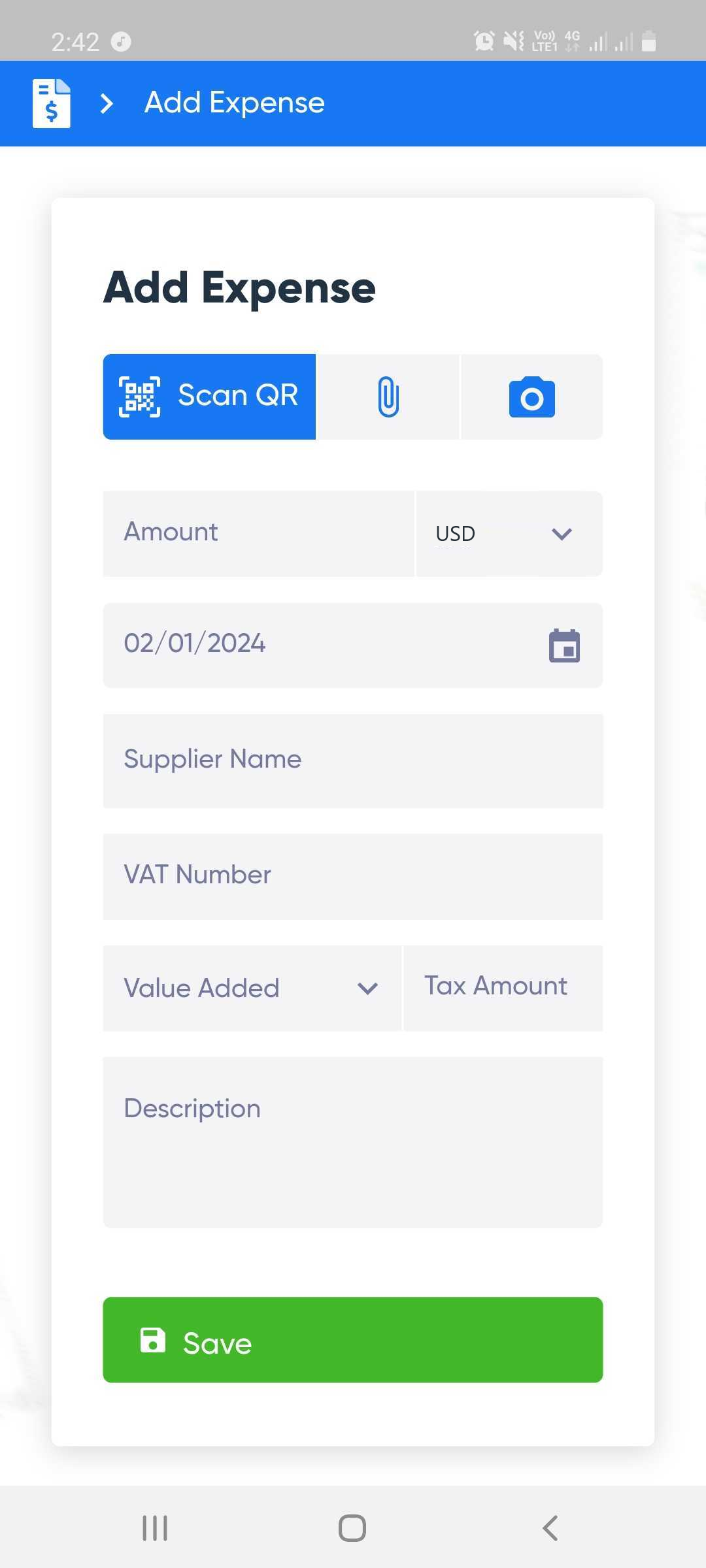 The Quick Expense Scanned App is a mobile app linked to the Daftra expense program, enabling you to quickly record expenses manually or by uploading the purchase invoice, scanning the barcode embedded in it, and automatically extracting the data.