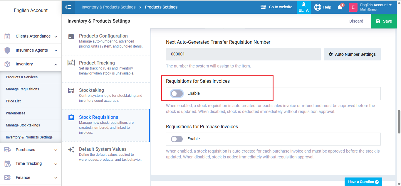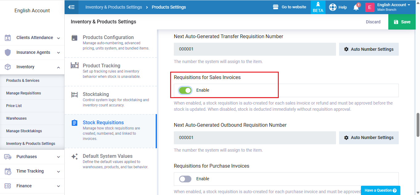 Enable Requisitions For Sales Invoices