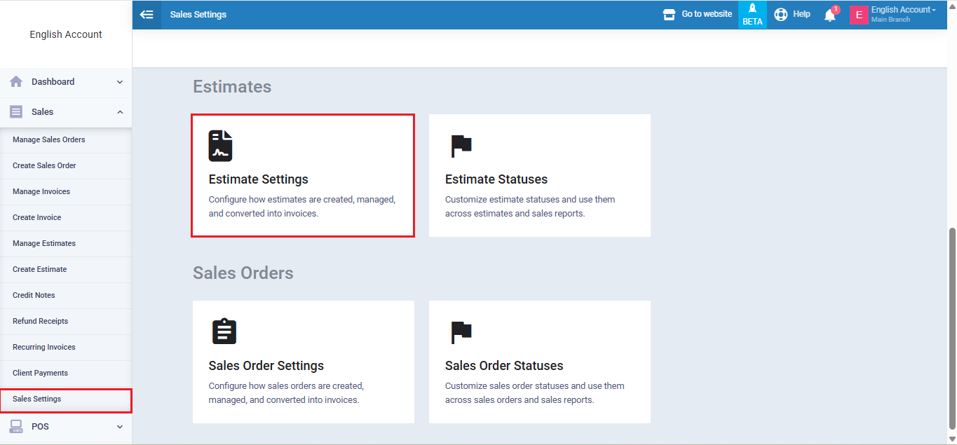 However, if you want to streamline the sales process further, you can enable the “Sales Orders” setting to make it an intermediate step between issuing estimates and invoices. This way, the sales cycle starts with an estimate, which, upon client approval, becomes a sales order to inform your employees. After approval, it converts into a sales invoice.