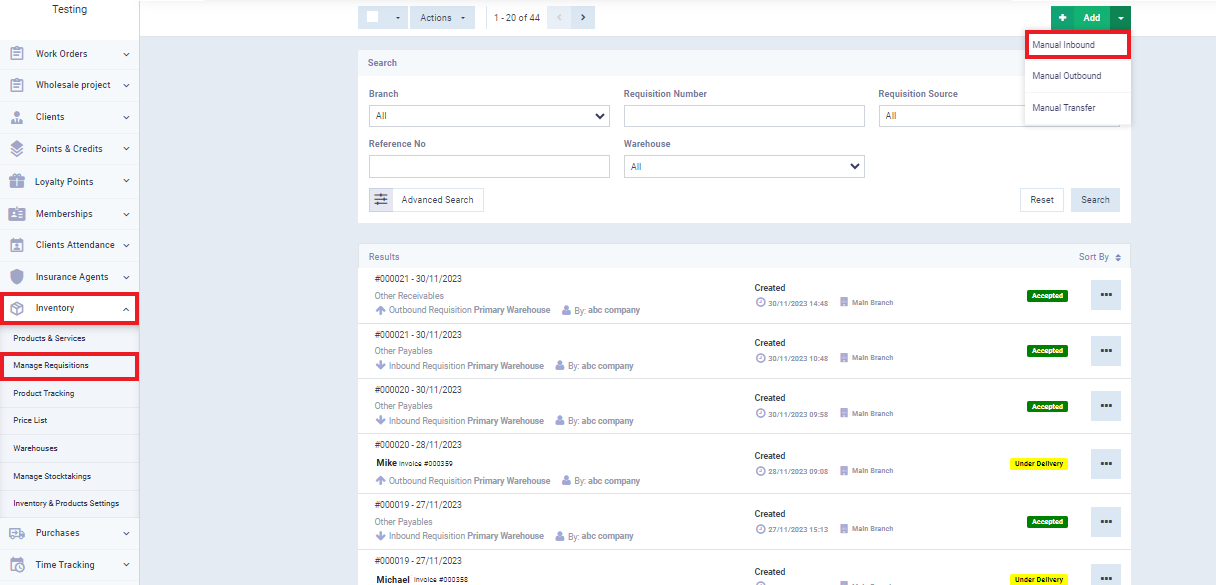 Afterward, go back to “Inventory” from the main menu, click on “Manage Requisition,” and choose this purchase invoice to set the expiry date for its items for tracking purposes.