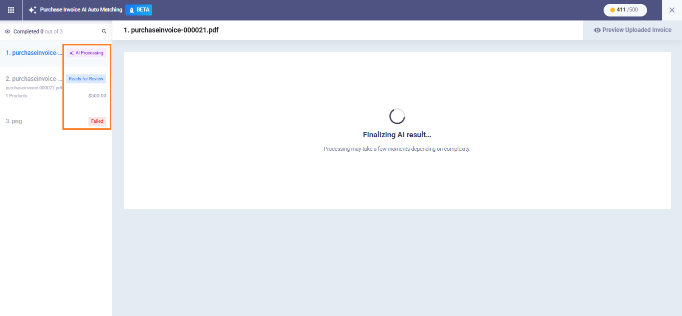 - Processing: AI is currently extracting the data. The file cannot be removed.