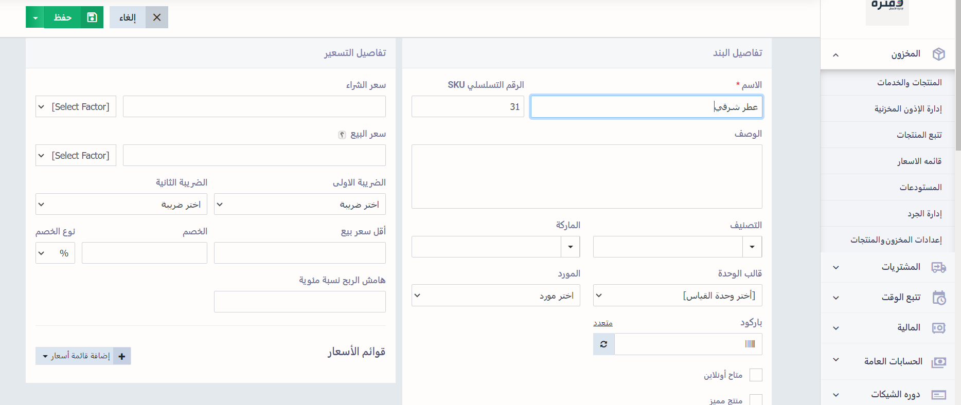 اضغط على زر “حفظ” ليظهر لك بعدها المنتج المجمع ضمن المنتجات والخدمات الخاصة بك وفي الفواتير.