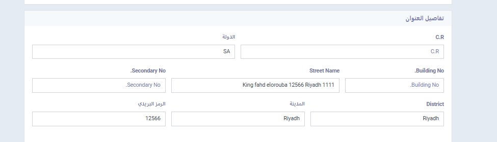- سيتم ملئ جميع البيانات بشكل آلى في حال كانت مضافة في إعدادات الحساب، مع وجود الحقل التالي يتم ملؤه يدويًا.