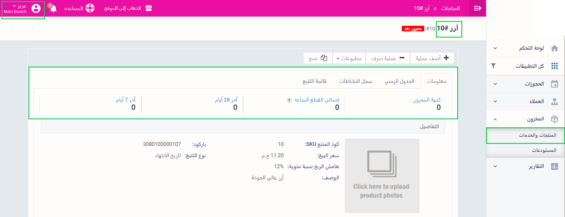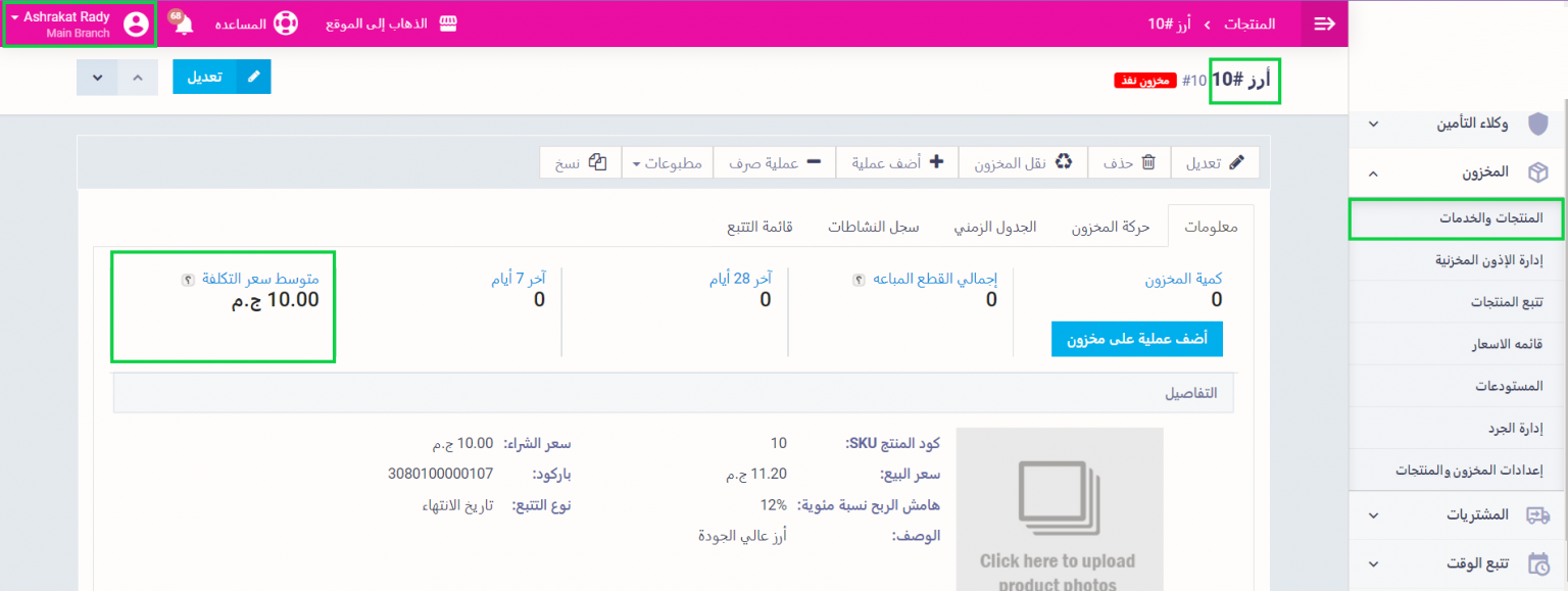 ثم توجه إلى “المنتجات والخدمات” المنسدلة عن “المخزون” بالقائمة الرئيسية واضغط على أي منتج لتتأكد من اختفاء متوسط سعر تكلفة المنتجات عن هذا المستخدم.