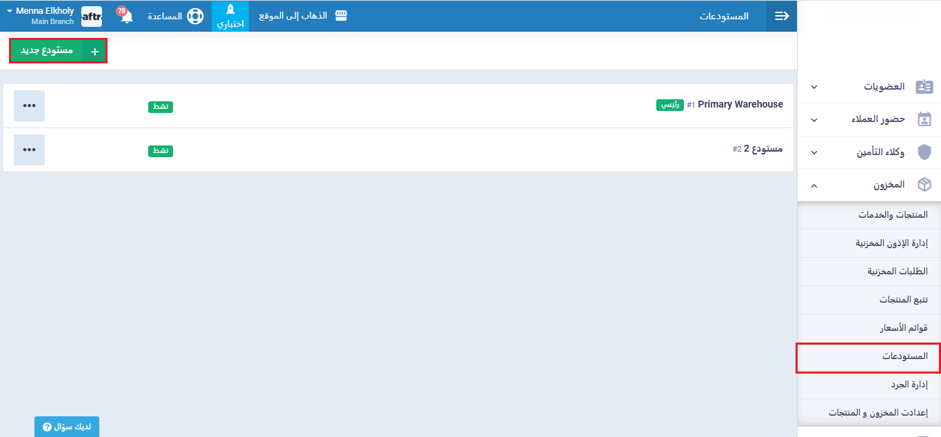 • انتقل إلى “المخزون” من القائمة الرئيسية، ثم اختر “المستودعات”.