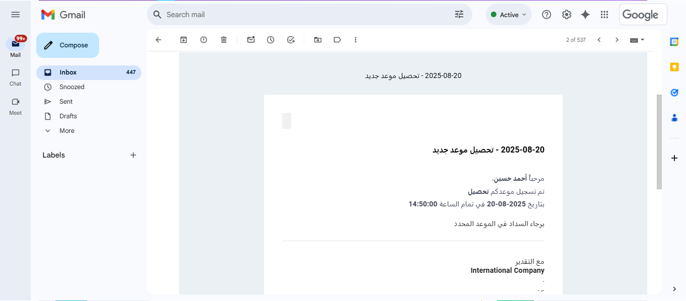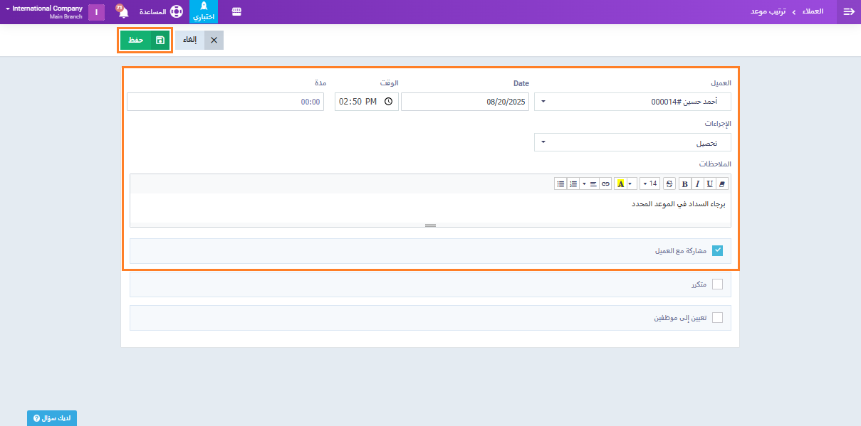 يتيح لك نظام دفترة إمكانية إرسال بريد تذكيري بالسداد لعملائك بشكل آلي، مما يساعدك على متابعة مستحقاتك بسهولة وضمان تحصيل المدفوعات في الوقت المحدد. في هذا الدليل سنتعرف على كيفية إعداد هذه العملية من خلال إنشاء موعد للعميل ثم ربطه بـ قاعدة إرسال آلي للمواعيد، بحيث يتم إرسال التذكير بشكل منظم دون الحاجة للتدخل اليدوي.