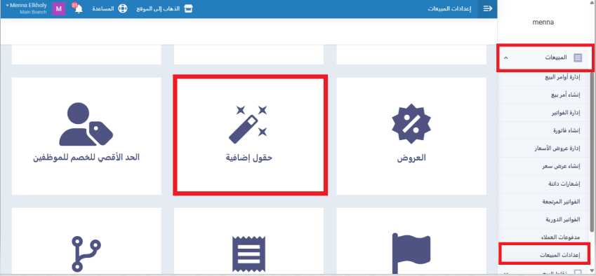 انتقل من القائمة الرئيسية إلى المبيعات، ثم اختر إعدادات المبيعات، وانتقل إلى قسم الحقول الإضافية.