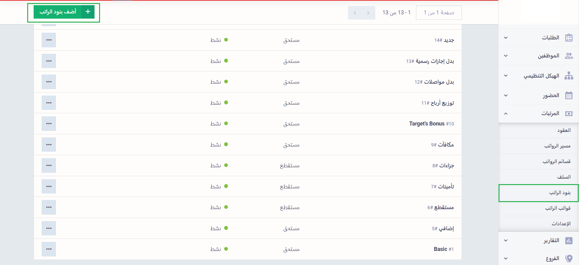 - الحالة: اختر هل تريد بند الراتب هذا “نشط” أم “غير نشط”.