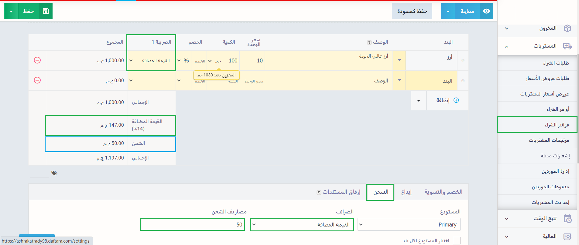 يمكنك التحكم في فواتير الشراء أكثر من خلال “إعدادات فواتير الشراء” والتي تشمل مميزات مثل: