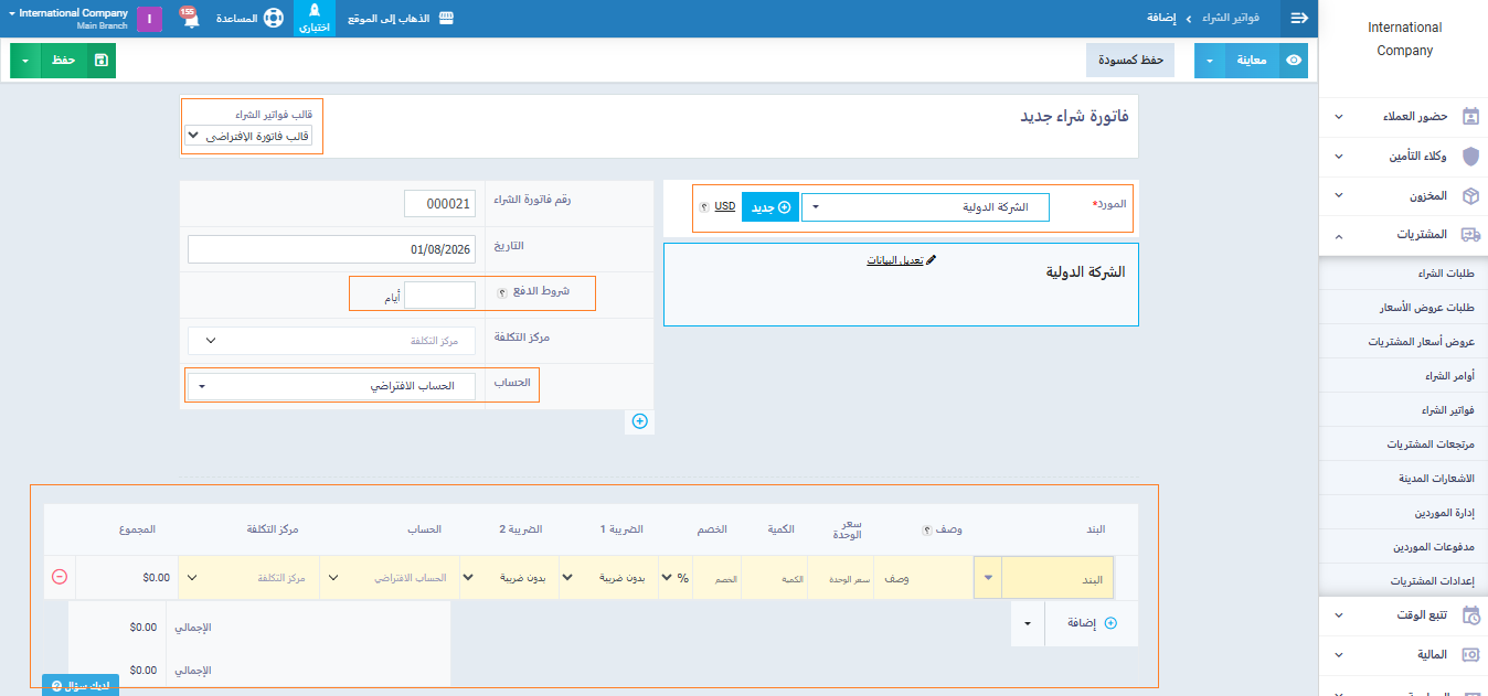 نستعرض في هذا المقال تفاصيل إنشاء فاتورة شراء جديدة، مع الإشارة لإعدادات فواتير الشراء وما تعكسه من خصائص ومميزات.