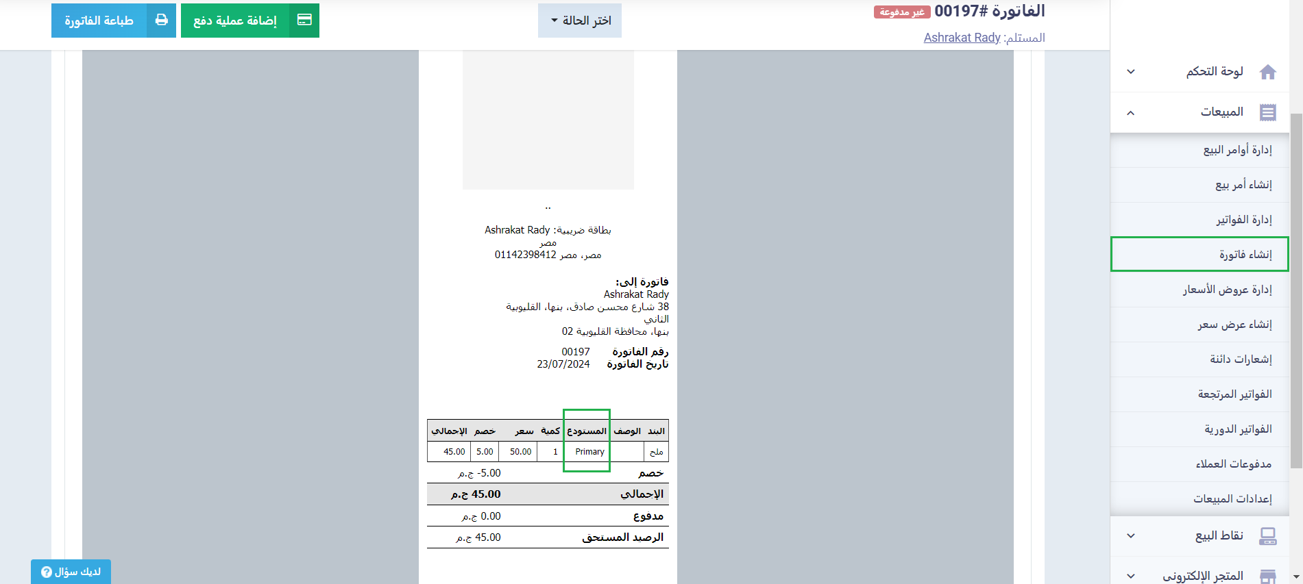 كيفية إظهار المستودع في قالب الفاتورة