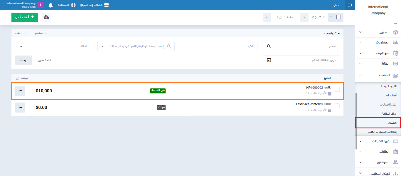 وبهذه الخطوات تكون قد أنشأت فاتورة مبيعات موثقة مرتبطة ببيع أصل، مع معالجة القيود المحاسبية بشكل صحيح، مما يسهل متابعة الأصول والإيرادات بمرونة ووضوح.