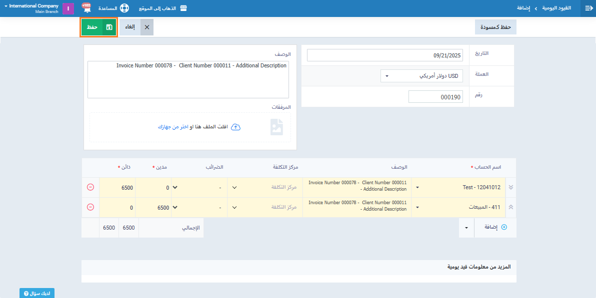 بعد إصدار الفاتورة، سيقوم النظام بإنشاء قيود محاسبية تلقائية.