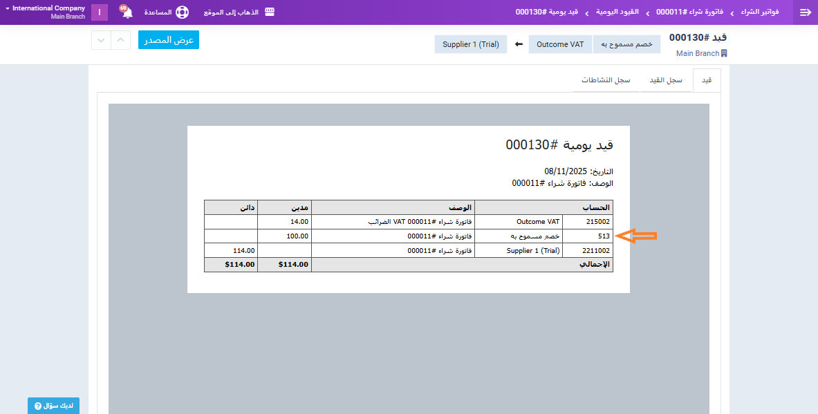 ابدأ بالتوجه إلى إعدادات الحسابات العامة، ثم قم بإيقاف التعيين التلقائي للحسابات، وذلك لتمكينك من اختيار الحساب المناسب يدويًا عند تسجيل فواتير المشتريات.