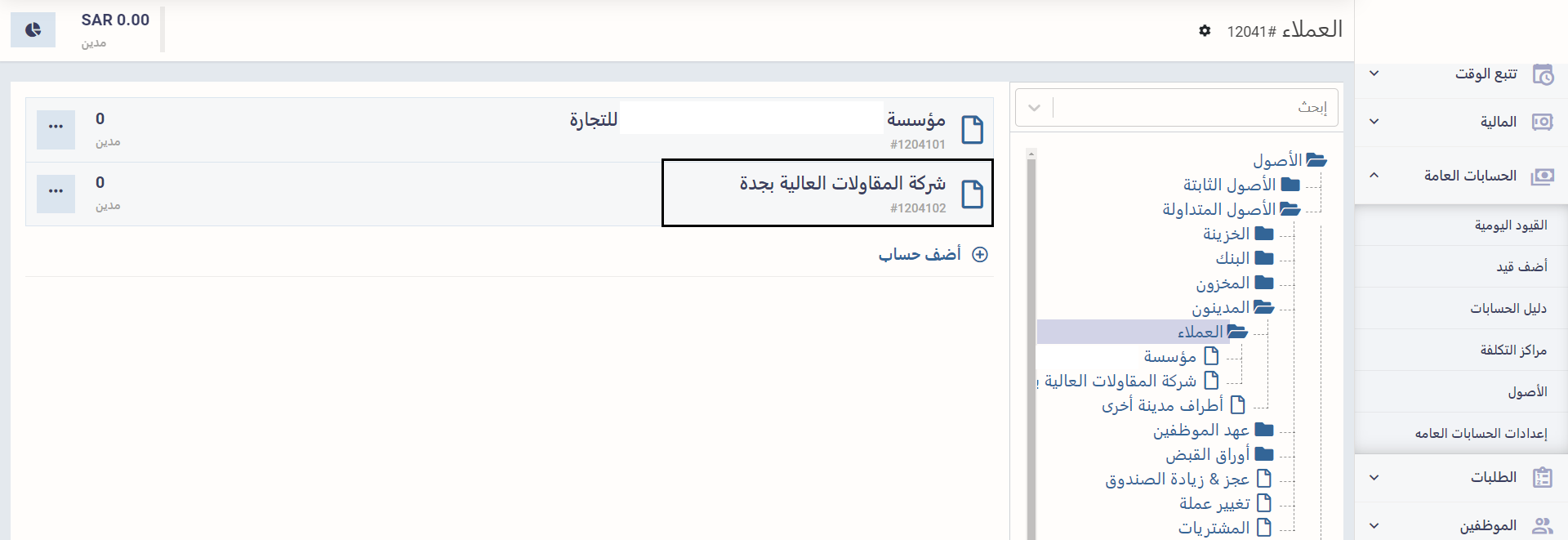 لتجد حساب قد تم إنشائه تلقائيًا باسم هذا العميل في دليل الحسابات